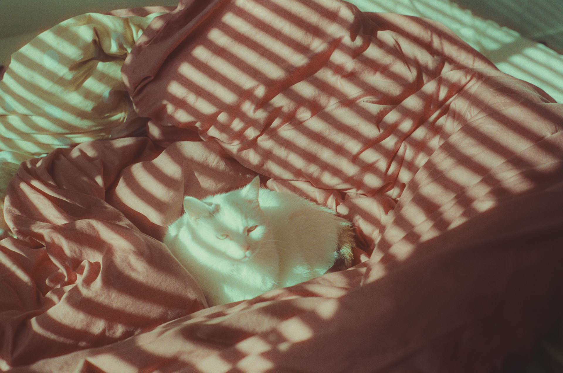~ species: calico cat (predominantly white with a calico tail)