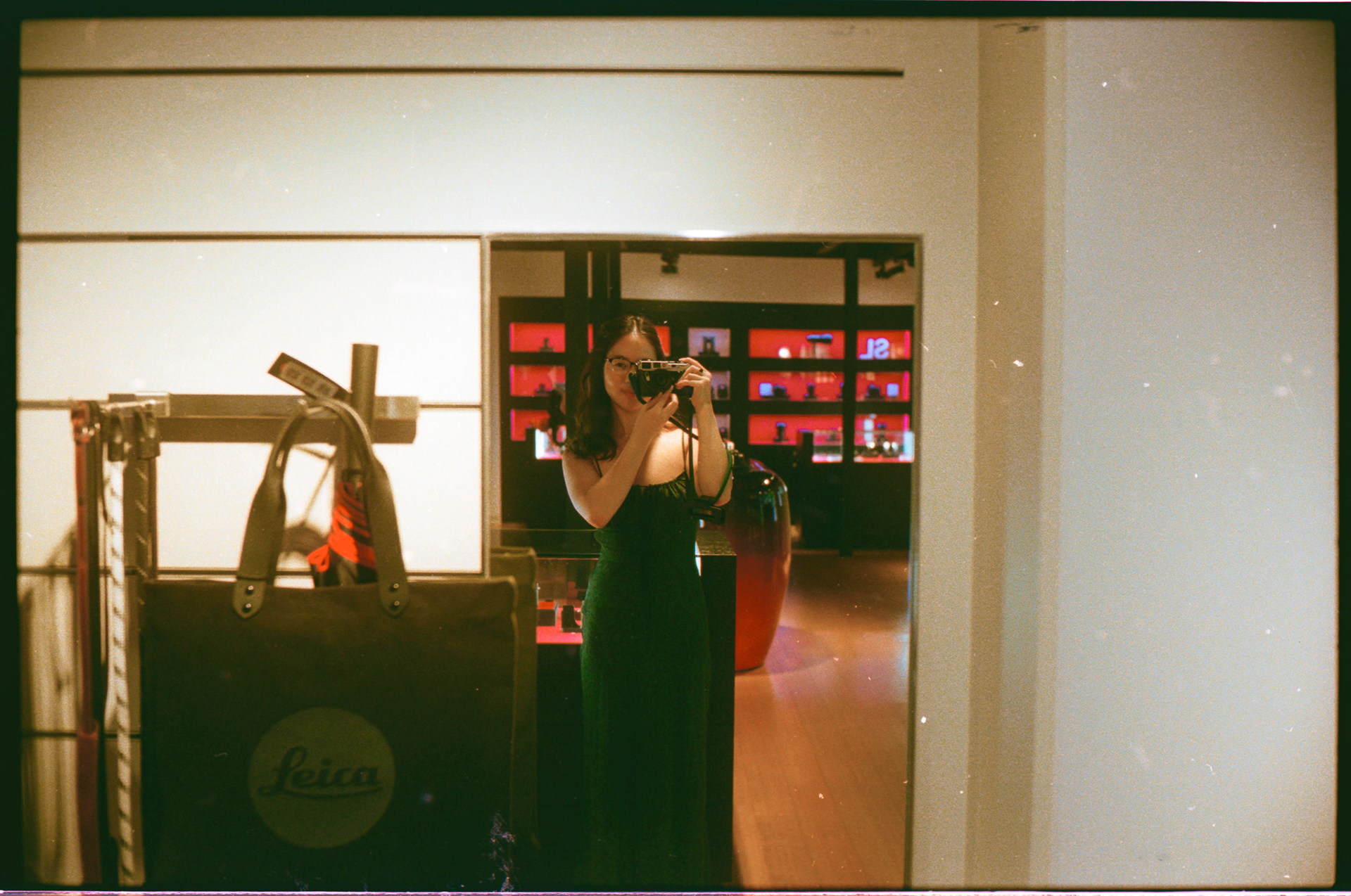 ~ accessories: green neck strap, matching green half-case, cinebloom 10% filter, wooden shutter button
